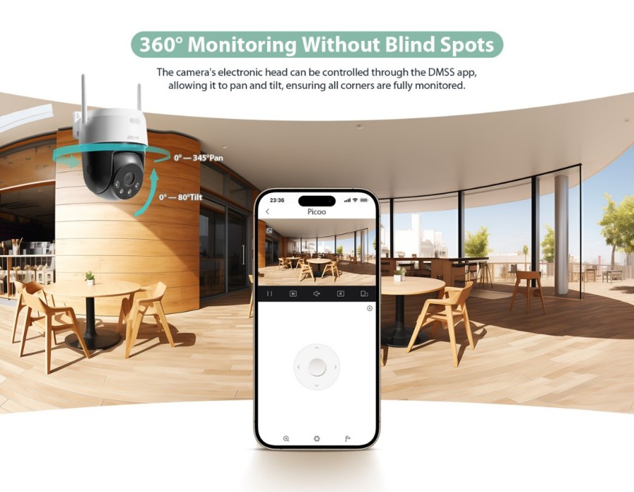 – Pan: 0° to 345°