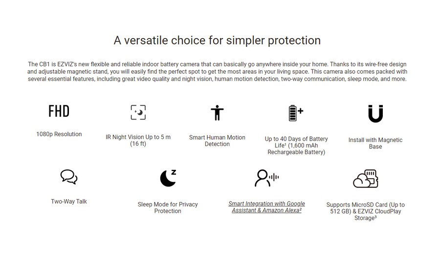 Cloud Storage: Supports EZVIZ CloudPlay storage (subscription required)